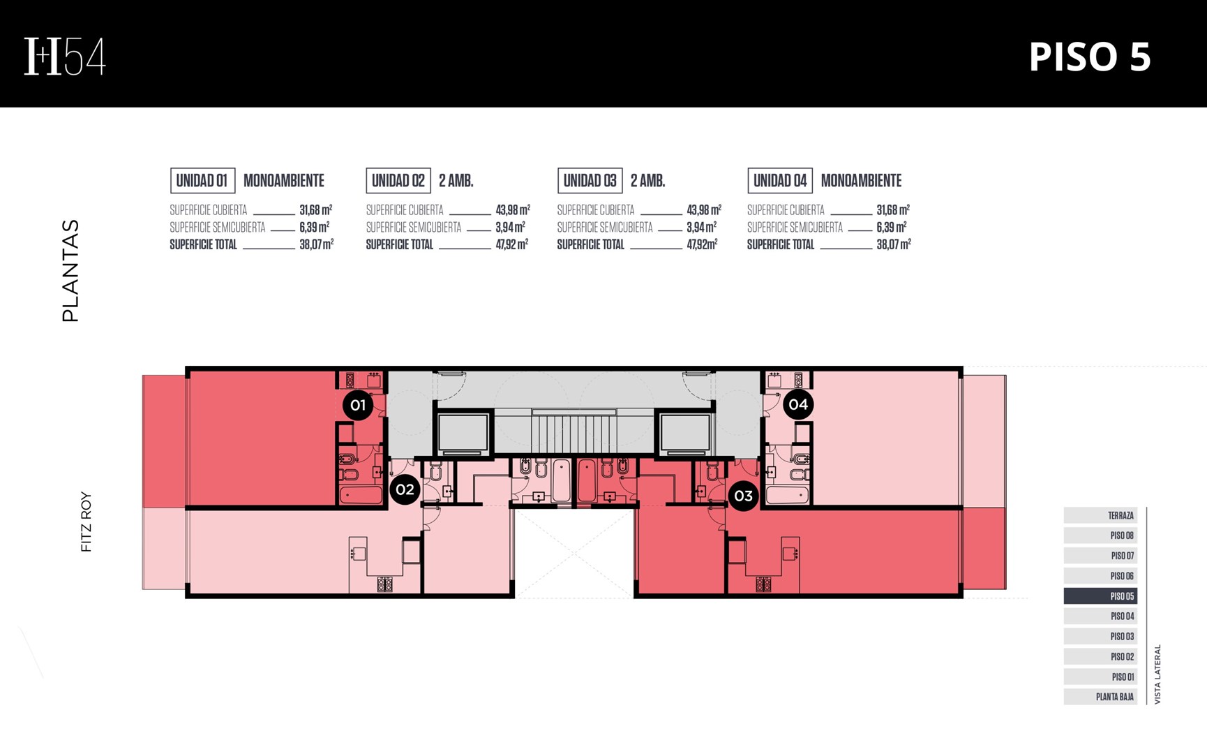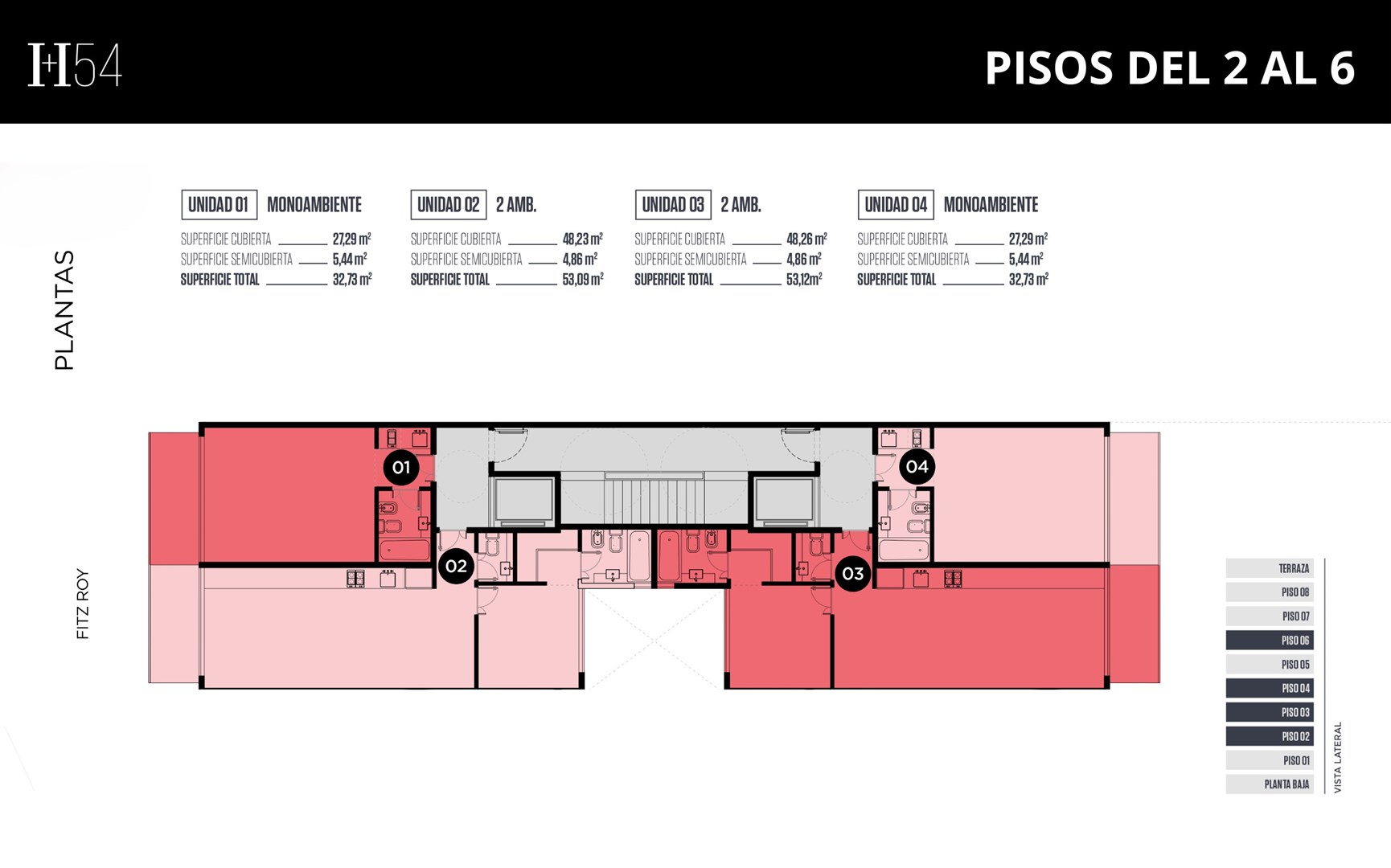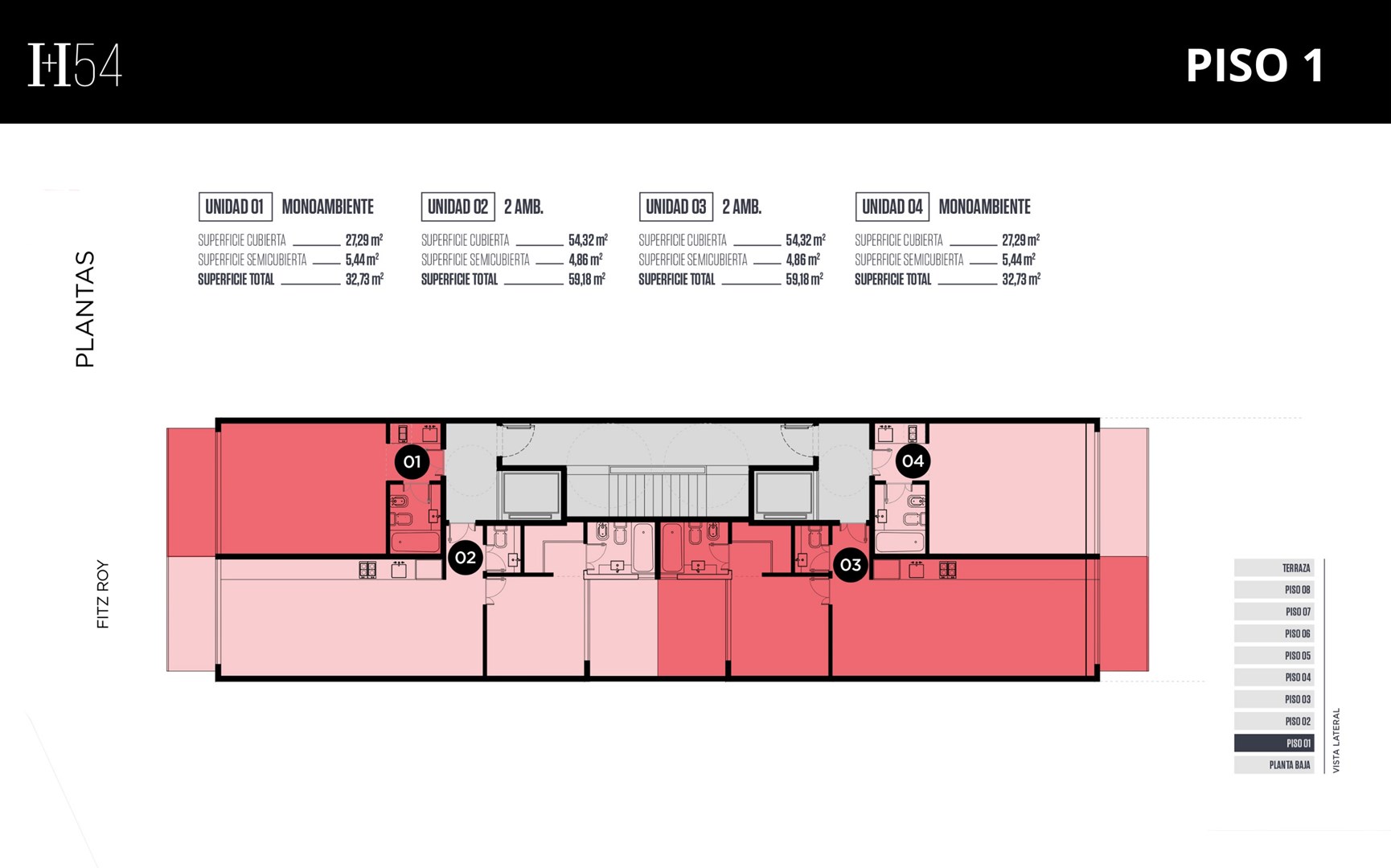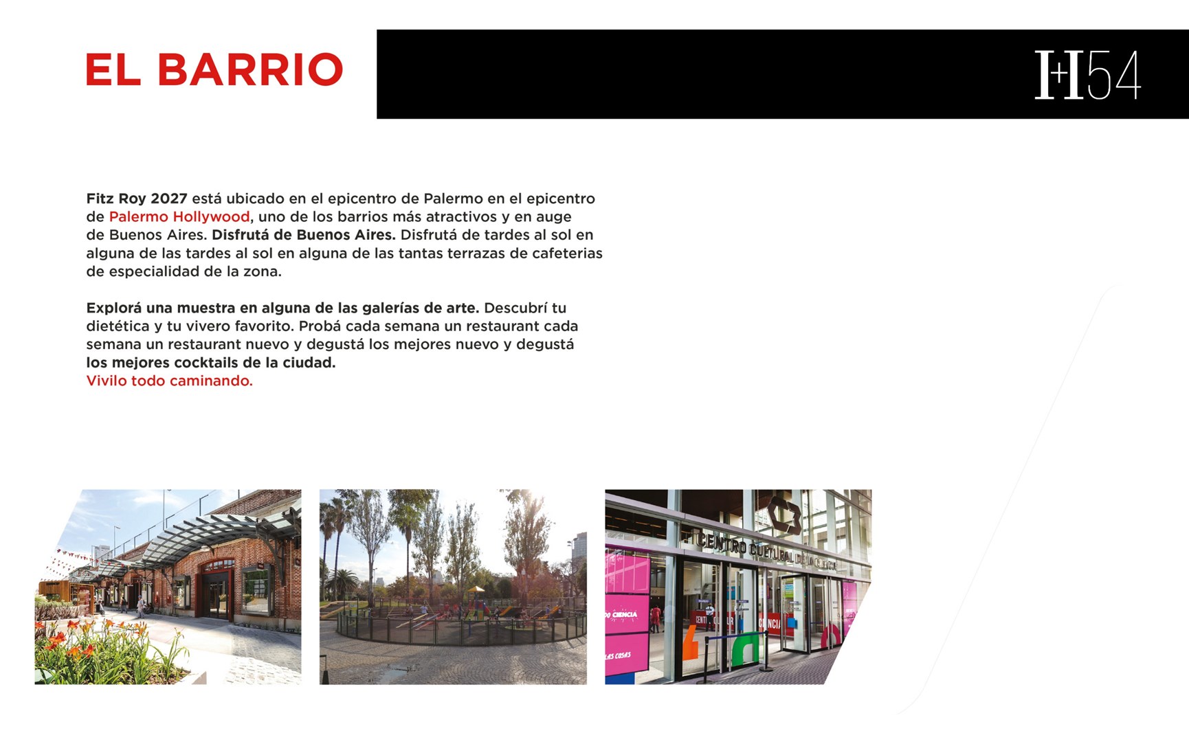 PISO 6, UNIDAD 1. DISPOSICION FRENTE ¡Llega Fitz Roy 2027!, tu oportunidad de vivir en el corazón de Palermo Hollywood! Ubicado en una de las zonas más vibrantes y dinámicas de Buenos Aires, Fitz Roy 2027 te ofrece un local de 8 pisos que se adapta a tus necesidades. ¡Rodeado de lo mejor de la ciudad! Restaurantes de autor, bares, productoras, cafés, librerías y tiendas exclusivas te esperan a pasos de tu puerta. Vivir aquí es disfrutar de una vida plena, rodeado de creatividad, cultura y entretenimiento las 24 horas. Este emprendimiento cuenta con una terraza exclusiva que incluye parrillas, un green lounge para relajarte y un solarium con vistas espectaculares de la ciudad. Todo lo que necesitás para vivir con estilo y aprovechar al máximo tu tiempo, sin perderte de nada. Fitz Roy 2027 no es solo un lugar para vivir, ¡es un estilo de vida! Conectá con la energía de Palermo Hollywood, el barrio más de moda de Buenos Aires. ¡No dejes pasar esta oportunidad única! Forma de financiación: Hasta 4 cuotas fijas en dólares. MEDIOS DE TRANSPORTE PÚBLICOS 111 - Fitz Roy 2049 108 - Fitz Roy 2049 93 - Bonpland 2099 34 - Av. Juan B Justo 1044 166 - Av Juan B Justo 1044 Palermo (Línea San Martín) - A 6 cuadras ACCESO A LAS AVENIDAS Av. Juan B. Justo - A 2 cuadras Av. Santa Fe - A 4 cuadras Av. Int. Bullrich - A 6 cuadras Av. Luis Maria Campos - A 6 cuadras PARQUES Y PLAZAS Parque de las Ciencias - A 4 cuadras Plaza Serrano - A 10 cuadras Plaza Armenia - A 12 cuadras Plaza Italia - A 15 cuadras FARMACIAS Farmacia Charite - Paraguay 5002 Farmacity - Paraguay 4911 Farmacia Bonpland - Paraguay 5301 Farmacia Nazca - Bonpland 1874 SUPERMERCADOS CERCANOS Supermercado Tendy - Guatemala 5620 Carrefour Express - Soler 5748 Supermercado DIA - Fitz Roy 2292 JF Palermo - Humboldt 2006 Wei Yuwen - Costa Rica 5568 INSTITUCIONES EDUCATIVAS Colegio 4 DE 9 - El Salvador 5528 Escuela de Comercio 31 DE 9 - Angel Justiniano Carranza 2045 Escuela Primaria Común N.06 - Av. Santa Fe 5039 Escuela Primaria Común N.09 - Gorriti 5740 CENTROS DE SALUD Sanatorio Los Arcos - Av. Juan B. Justo 909 Consultorio Odontológico - Fitz Roy 1925 CeSAC N.33 - Av. Córdoba 5741 ESTACIONES DE SERVICIO YPF - Av. Juan B. Justo 1215 Shell - Av. Juan B. Justo 1333 Se deja constancia que las medidas, superficies, y m2 consignados son aproximados sujetos a verificación y/o ajuste por el interesado en adquirir. El precio del Inmueble puede ser modificado sin previo aviso. Fotos de carácter no contractual "En cumplimiento de la ley 2340 CUCICBA, Ley 10.973 de la Prov de Bs As, Ley Nacional 25.028 de lealtad comercial, Ley 24.240 de defensa al consumidor, las normas del código civil y comercial de la Nación y Constitucionales, los agentes NO ejercen corretaje Inmobiliario. Todas las Operaciones Inmobiliarias son objeto de intermediación y conclusión por parte de los martilleros y corredores colegiados, cuyos datos se exhiben debajo del nombre de la Inmobiliaria" La Publicación de este Inmueble es a solo título informativo, pues la venta de la Propiedad está supeditada a que el Propietario cumplimente el trámite ante la AFIP para la obtención del n de COTI correspondiente, para dar cumplimiento a la resolución general nro. 2371 de AFIP. Home54 S.A.S Matrícula N 6324. Datos publicados: S.E.U.O